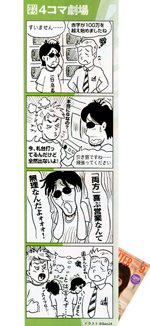 9月号は『私が最近熱を入れて張り切っている仕事「一日店長」の経験を踏まえた...』のコラム用4コマ。