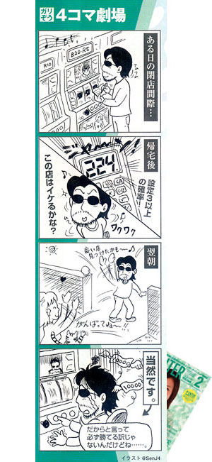 2月号は『皆さんは、どの様な基準でパチスロを打つ店を選んでいますか?...』のコラム用4コマ。