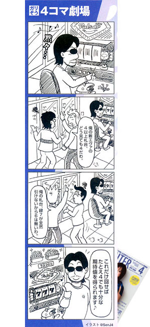 4月号は『多くの人が欲しがっているであろう「保険」について、パチスロに当てはめながら考えて...』のコラム用4コマ。