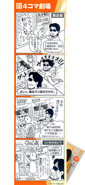5月号は『ホールにとっての新台入替は、集客を期待できるイベントの一つとされていますので...』のコラム用4コマ。