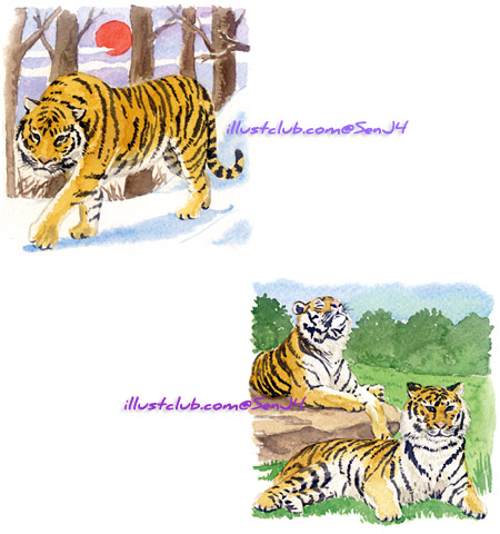 今回は2冊の年賀状ムック2010年版に、牛の水彩画を合わせて16作品描いています。