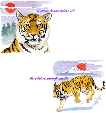 今回は2冊の年賀状ムック2010年版に、牛の水彩画を合わせて16作品描いています。